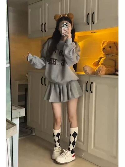 2点セット 普段使い 長袖シャツ トップス ミニスカート ショート レディース あたたかい かわいい シルエット風きれいめサイズ秋冬ゆったり ファッションダブル大人可愛い