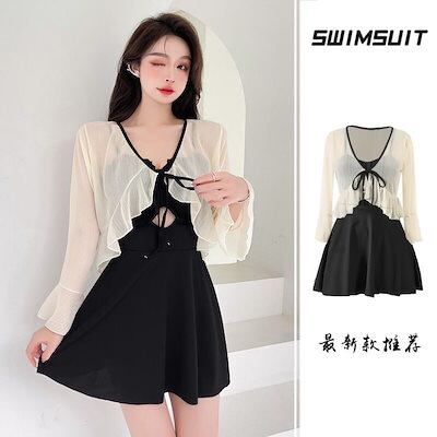 韓国ファッション長袖日焼け止め水着ワンピース紫外線対策ラッシュガード二点セットアップスイミングウェア温泉水着