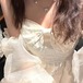 真珠ホワイトキャミワンピース薄手 レディース ウエスト引き締め可愛らしいワンピース カジュアルキャミワンピース