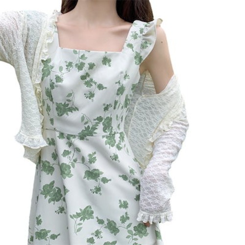 韓国ファッションシンプルなワンピースレディース 花柄ワンピース キャミワンピース 夏服 ロングワンピースドレス