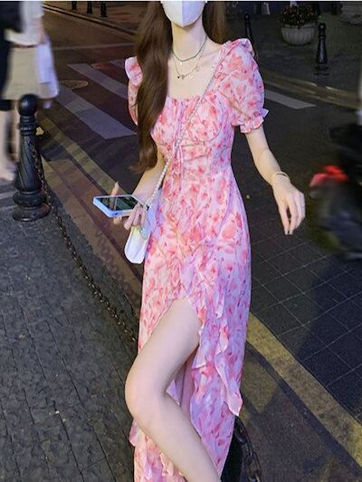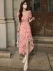 韓国ファッション ワンピースレディース プリント柄ワンピ かわいい 夏服 ロングワンピースドレス ヘビロテ!キャミワンピース