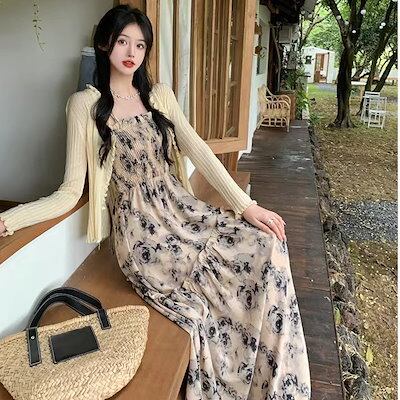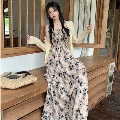 韓国ファッションワンピースレディース可愛い大人気 花柄ロングワンピース キャミワンピース 夏服 ロングワンピースドレス
