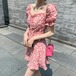 韓国ファッションシンプルなワンピースレディース プリント柄ワンピ 夏服 ロングワンピースドレス