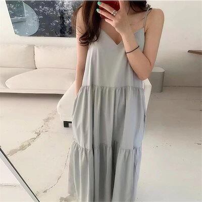 2024新作 シンプル 気質 可愛い ロングワンピース ノースリーブワンピース Tシャツワンピース リゾートワンピース 百掛け ワンピース キャミワンピース リネンワンピースヘビロテ!キャミワンピース