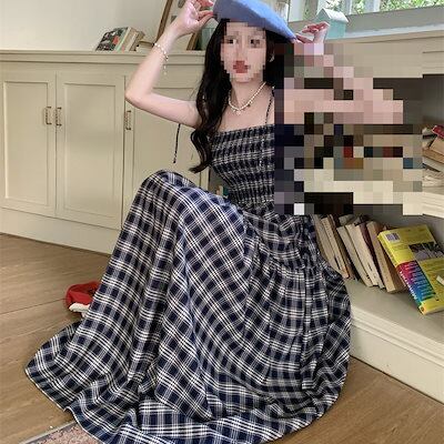 キャミワンピース夏 新作 おしゃれ カジュアル ウエスト引き締め ワンピース 夏 ロングワンピース リゾートワンピース チェックワンピース キャミワンピース 気質 着痩せノースリーブワンピースリネンワ