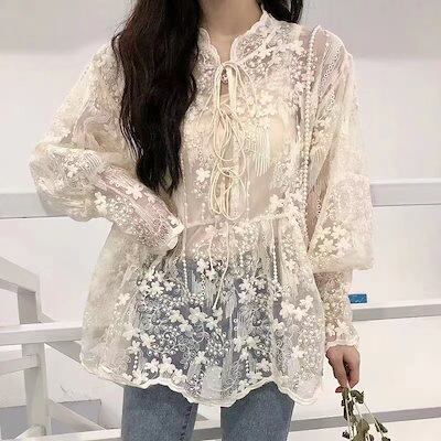 レース レディース トップス シャツ ブラウス 花柄 シースルートップス