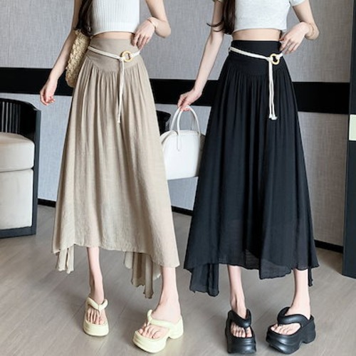 プリーツスカート レディースミディアム丈ファッション薄型スカートハイウエストプリーツAラインスカート