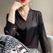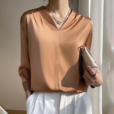 今っぽシアーシャツトップス夏レディース シルクサテンVネックシャツ薄い長袖 気質 ブラウス