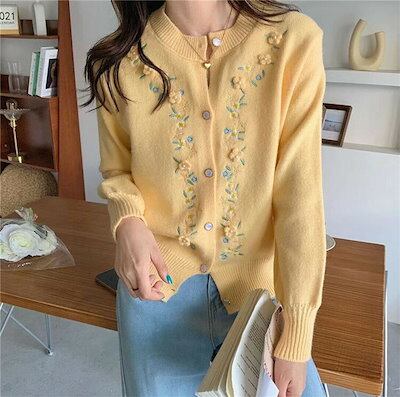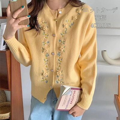 ニット長袖カーディガンセーターニットカーデコートレディース花柄体型カバーゆったり大きいサイズ前開け30通勤通学可愛い秋