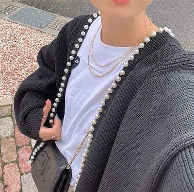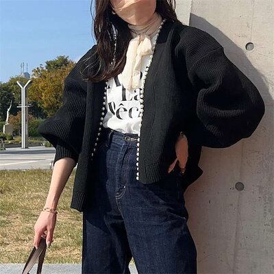 ゆるニットカーディガン レディース アウター ボレロ 袖ボリューム 羽織り 羽織 ニット 秋冬 長袖 ゆったり ニットカーデ ライトアウター カーデ オーバーサイズ ロング パール シンプル 無地
