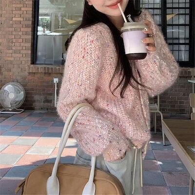 ニットカーディガン レディース 春 秋 冬 ショート丈 可愛い ガーリー フェミニン 大人 トップス ふわふわ ゆったり 厚手 vネック シンプル 羽織 着回し アウター 長袖 セーター カーディガン