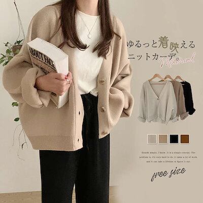 カーディガン レディース 秋冬 ニット セーター コート アウター 羽織り アウター vネック 長袖 前開き 通勤 大人 可愛い カジュアル ゆったり お洒落 きれいめ オフホワイト ベージュ ブラッ