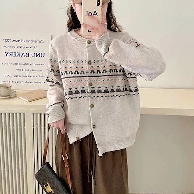 ノルディック柄 ニット カーディガン レディース 秋冬 トップス 前開き 長袖 ノルディック ニットカーディガン ニットカーデ 丸首 大きめ アウター クルーネック ゆったり ガーリー レトロ カジ