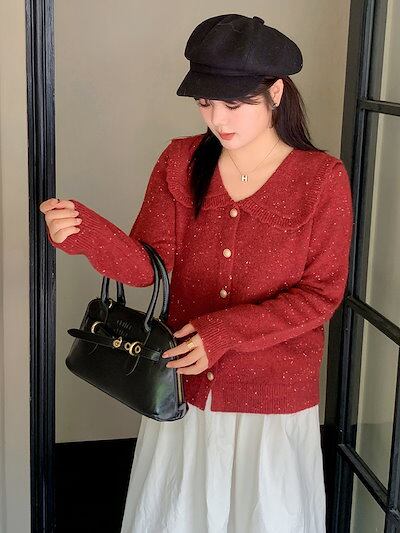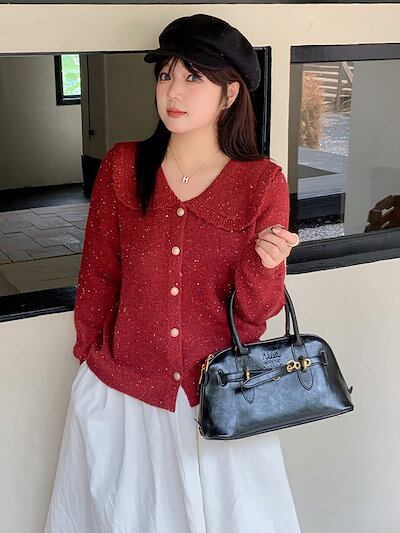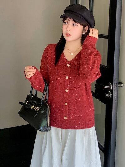 大きい符号の女装人形の気質の赤い外套女性の彩点セーター冬太ってmmニットのカーディガン