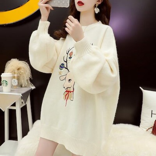 赤いクリスマスの鹿の子のセーターの女性の厚手のミッドレングスの2022年秋冬の新しいルーズで怠惰なス