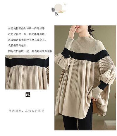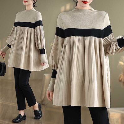 「ファットガール」 2024秋冬新品 ロングニット Aライン 大きいサイズ 体型カバー レディース プリーツ シワ セーター ニット メガ割