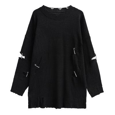 【J.Fashion】 2024秋新品 ダメージ ニット レトロ ベーシックニット おしゃれ 関連商品は店で購入可能 レディース メガ割