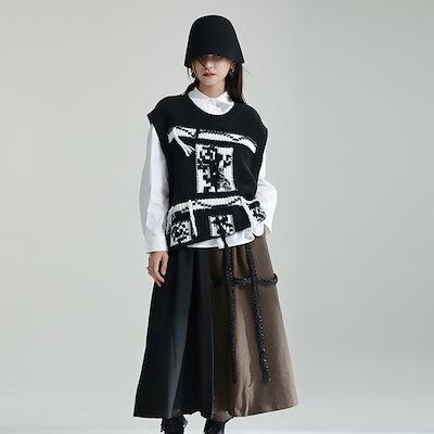 【J.Fashion】 ニットベスト おしゃれ ゆる 飾り付き レディース 柄 ベスト カシミヤタッチ ブラウス メガ割