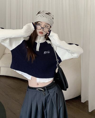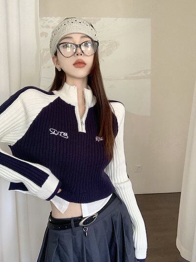 偽2件 ショットタイプ ニット セーター レディース 秋冬 2022 ニューデザイン 立ち襟 トップス