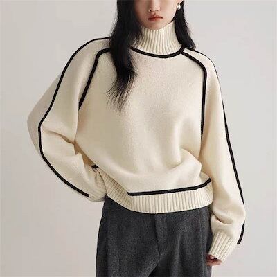 ニット セーター レディース 長袖 春 秋 冬 配色 ニットセーター おしゃれ チュール 秋冬 プルオーバー オフィス トップス ゆったり リラックス シンプル 大きいサイズ カジュアル 柔らかい 仕