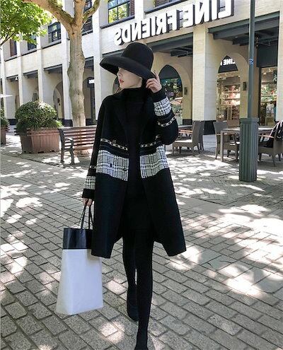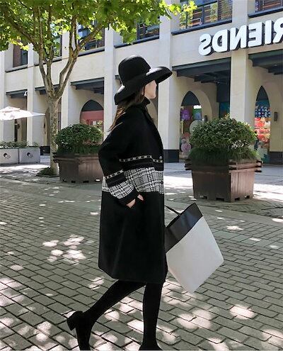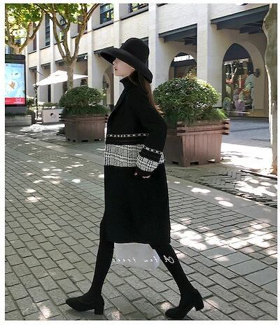 チエスターコート ロングコート コート 羽織 千鳥格 アウター 秋冬コート トレンチコート バイカラー チェック柄 膝丈 レディース エレガント カジュアル ナチュラル 体型カバー 暖かい フォーマル