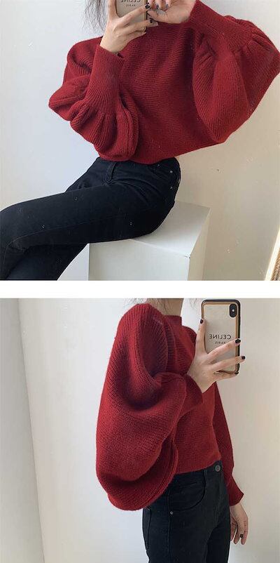 ニットセーター パフ袖 リブニットニット セーター レディース 長袖 秋冬 冬 プルオーバー トップス 30代 40代 レディース 秋 秋服 ニット セーター 冬服 ぽわん袖 ボリューム袖 バルーン袖
