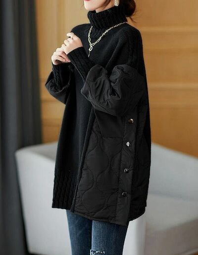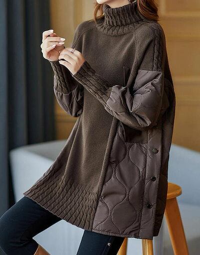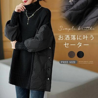 チュニック ニットセーター レディース セーター ハイネック チュニックワンピース 秋冬 大きいサイズ 異素材 ニット切替 タートルネック きれいめ ゆったり 体型カバー 柔らか 厚手 防寒 暖かい