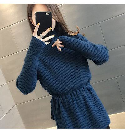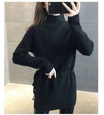 チュニック レディース 秋 冬 ニットソー 全4色 トップス セーター タートルネック ゆったり チュニック コットンニット オフィスカジュアル ロング 長め 体型カバー リブ お尻が隠れる 綿 冬コ