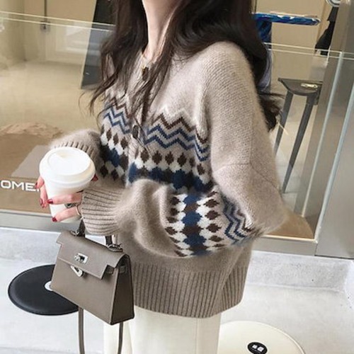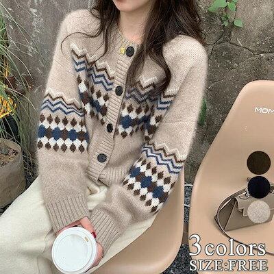 ニットセーター ニットカーデ 暖か ゆったり 可愛い 長袖 ノルディック風 秋 冬 トレンド 大人可愛い トップス レディース