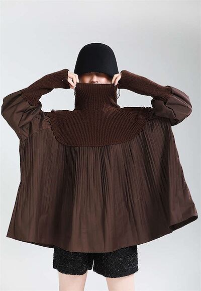 セーター 異素材切り替え レディース 長袖 きれいめ ニット ギャザー 大人 女性 トップス オーバーサイズ ドルマン チュニック 春 秋 ゆったり 体型カバー 30代 40代 50代 ハイネック