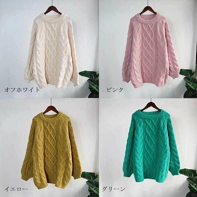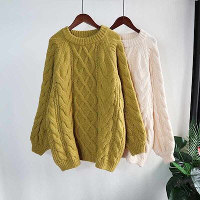 ニットセーター 秋冬 プルオーバー セーター ケーブル編み 厚手 トップス 長袖 大きいサイズ セーター レディース アウター ラウンドネック 秋 冬 ニットソー 無地 リブニット ベーシック インナ