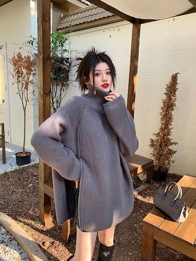 ック ファスナー 厚手 保温 レディース セーター 怠惰な風 ゆったり ギャル デザインセンス ニット トップス