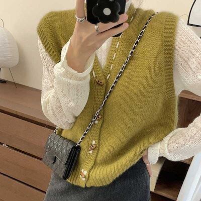 ベーシックニット 上品無地ニットベストカーディガンレディース秋の新作カンバンセーターアウターシャツジャケット重ね着トップス森系ベスト30%制限