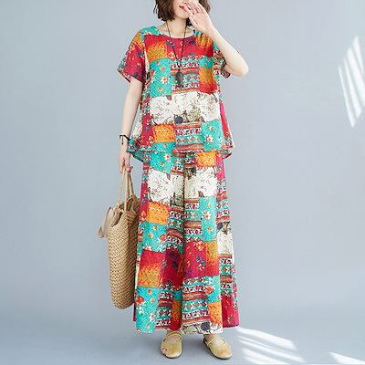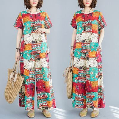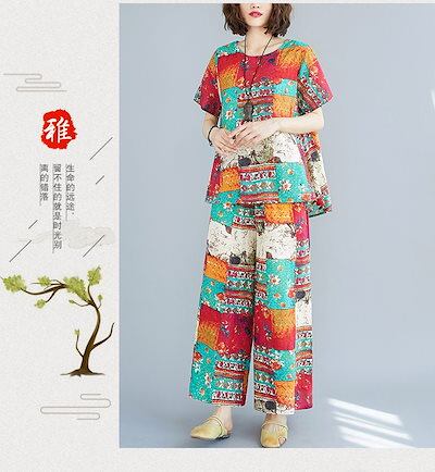 「ファットガール」 民族風 上下セット 春夏 レディース 大人 30代 40代 中年 体型カバー 大きいサイズ セットアップ 中華風 ジャージ 卒業式 ママ フォーマル スーツセットアップ 1 メガ割