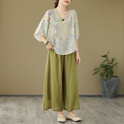 「ファットガール」 民族風 上下セット 春夏 レディース 大人 30代 40代 中年 体型カバー 大きいサイズ セットアップ 中華風 ジャージ 卒業式 ママ フォーマル スーツセットアップ 4 メガ割