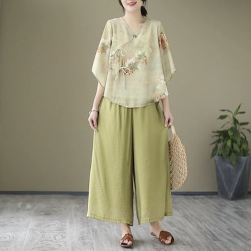 「ファットガール」 民族風 上下セット 春夏 レディース 大人 30代 40代 中年 体型カバー 大きいサイズ セットアップ 中華風 ジャージ 卒業式 ママ フォーマル スーツセットアップ 7 メガ割
