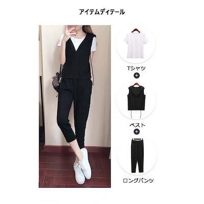 新品追加 セットアップ レディース 40代 春ルームウェア 無地 ベスト Tシャツ ロングパンツ 3点セット 上下セット スポーツ オシャレ 薄手 着痩せ お出かけ