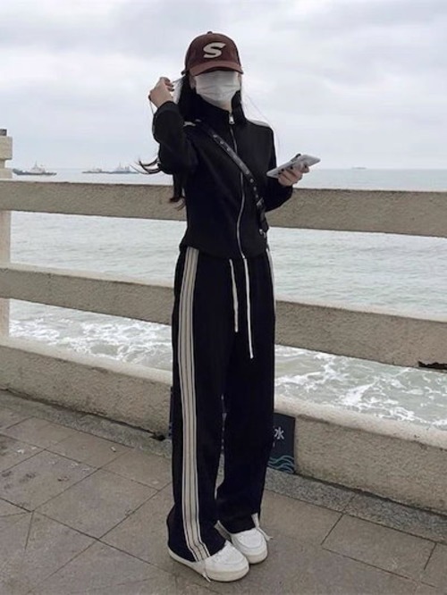 本日の限定商品韓国 ジャージ セットアップ ジャージ スポーツウェア 上下セットアップ 秋ファッション韓国版ゆるスリム ファッション・カジュアル2点セット レディース・スポーツウェア・ツーピース