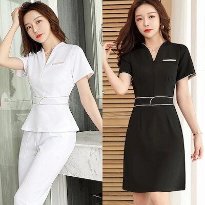 大人気 セットアップ ユニフォーム エステ サロン通勤 レディース 女性 制服 美容院通勤 ワンピース半袖 七分袖 ジャケット 上下セット エステ制服