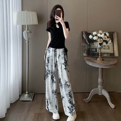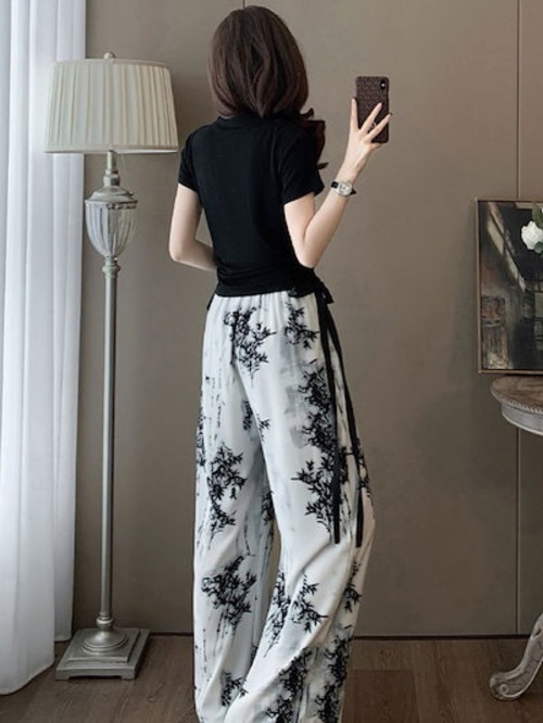 セットアップ レディース 夏 韓国 半袖 スポーツカジュアルスーツファッション国風シフォンワイドパンツ洋風2点セット ルームウェア セットアップ スウェット上下セット スーツ