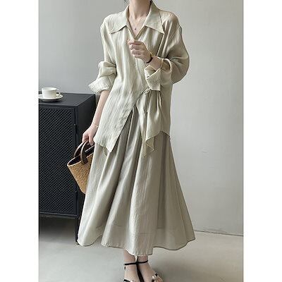 涼しく楽ちんセットアップ レディース 夏 韓国 新中国式シャツスカート女性2024夏薄手のシャツ付き半身スカート2点セット ルームウェア セットアップ スウェット上下セット スーツ