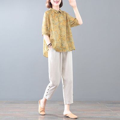 涼しく楽ちんセットアップ レディース 夏 韓国 半袖 2024新型ゆとり遮肉痩せ見えママ着花柄2点セット女 ルームウェア セットアップ スウェット上下セット スーツ
