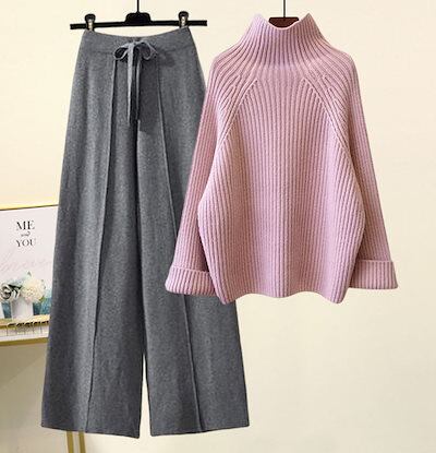 【2枚購入で 2oo円OFF!】秋冬 新作 おしゃれ 気質 レディースセットアップ ニット アウター 二点セット 上下セット セーター ニットワイドパンツ セットアップ