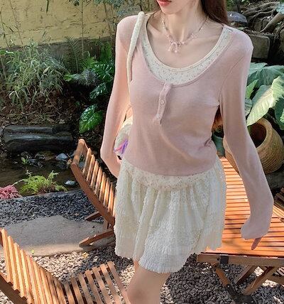 2点セット 普段使い 長袖シャツ トップス ミニスカート ショート レディース あたたかい かわいい シルエット風きれいめサイズ秋冬ゆったり ファッションダブル大人可愛い