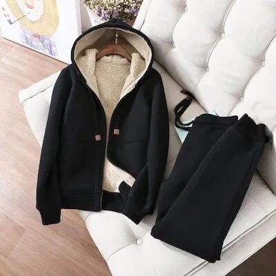 裏起毛 厚手 小柄 スウェット+パンツ2点セットレディース 秋冬 おしゃれ 気質 セット 通勤 韓国ファッション セットアップ ダウンジャケット