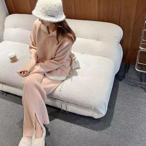 ベーシックニット 秋冬 新作 おしゃれ 気質 上下レディースセットアップ ニット アウター 二点セット セーター ワイドパンツ セットアップ 通勤 長袖セーター 福袋