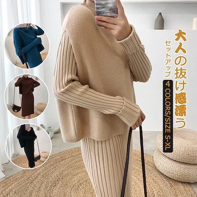 秋冬 新作 おしゃれ 気質 セーター ワイドパンツ セットアップ 長袖セーター 上下レディースセットアップ ニット アウター 二点セット ベーシックニット 福袋