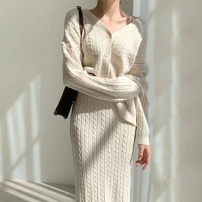 上下レディースセットアップ 二点セットベーシックニット 秋冬 新作 おしゃれ 上下レディースセットアップ ニット アウター セーター セットアップ 通勤セーター 福袋