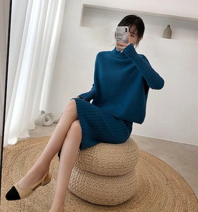 秋冬 新作 おしゃれ 気質 セーター ワイドパンツ セットアップ 長袖セーター 上下レディースセットアップ ニット アウター 二点セット ベーシックニット 福袋7