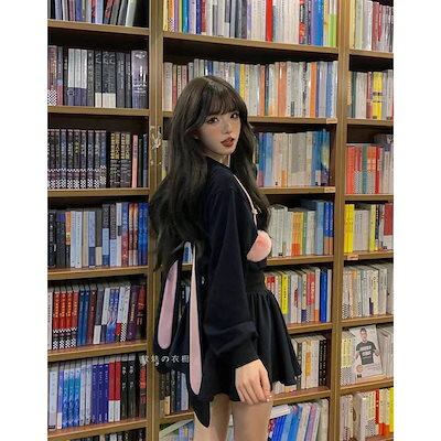 【2024新入荷】パーカー うさ耳 フード付き 長袖 ショート丈 トップス レディースパーカー+スカート 韓国ファッション ジップアップパーカー へそ出し ポンポン付き 可愛い 地雷系 アウター